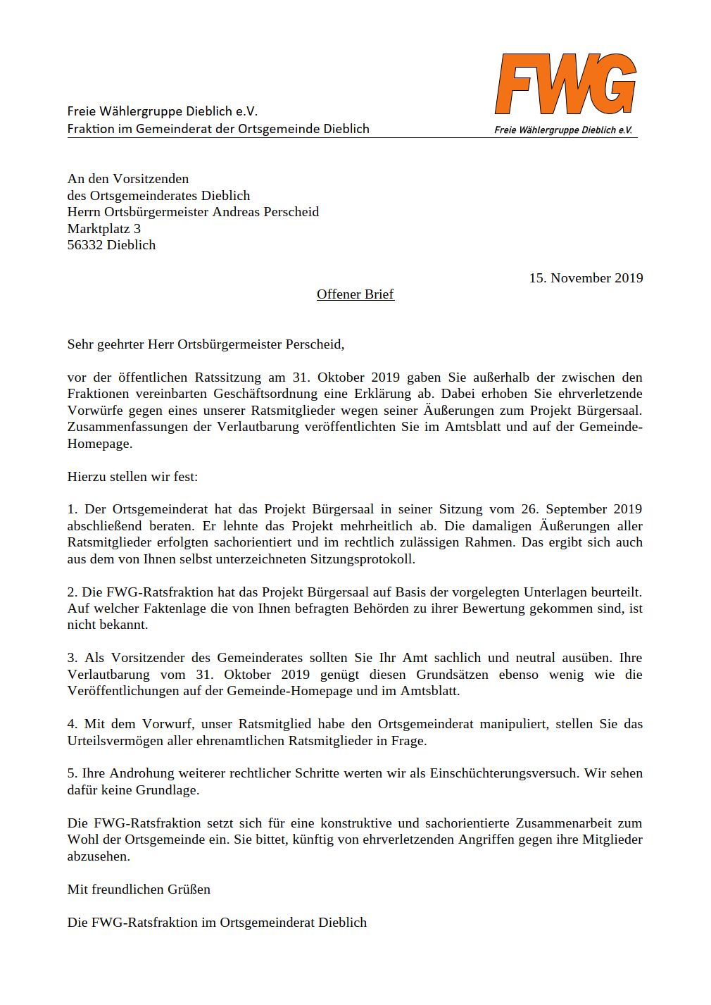 Im Kalenderjahr 2019 konnte der Verein drei neue Mitglieder werben: Felix Jung, Eric Stumm und Erich Feuerpeil. Ratsmitglied Eric Stumm ist aus der SPD ausgetreten. Nach Ausschluss aus der SPD-Fraktion, ist er Mitglied der Freien Wählergruppe geworden und gehört seither der FWG-Ratsfraktion an.
